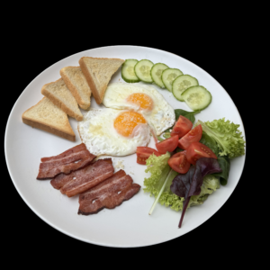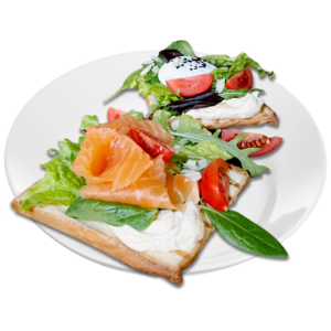 Слабосолений лосось Томати черв Яйце пашот Мікс салату мус із крем сиру Вес – 300 гр