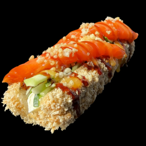 Рис, норі, темпура,огірок, вершковий сир, лосось слабосолений, соус унагі, соус манго.