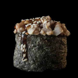Рис , норі, вугор, соус унагі, кунжут, соус спайсі Вага — 60 гр.