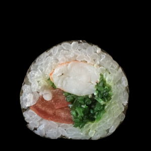 Рис, норі, креветка, салат чука, томат, горіховий соус. Вага — 290 гр.