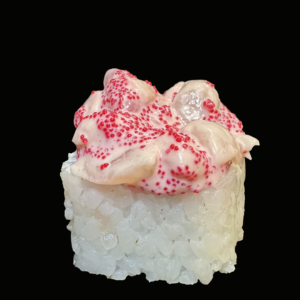 Рис, норі, краб, огірок , крем сир , морський гребінець ,Ікра тобіко , майонез. Вага — 350гр.