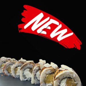 Рис, норі, креветка тигрова, лосось, вугор , вершковий сир, огірок, ікра тобіко, японський майонез, унагі соус. Вес — 350 гр.