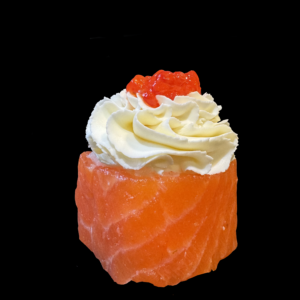 Рис, норі, крем сир, зелена цибуля , помідор , лосось, том-ям соус. Вага — 340гр.