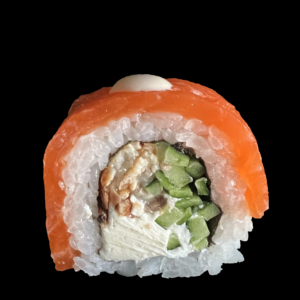 Рис, нори, копченый угорь, огурец, японский майонез, кунжут, соус унаги. Вес — 310 гр.