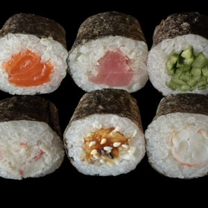 Макі лосось Макі креветка Макі тунець Макі вугор З шапкою з моцарелли та пармезану Вага: 700 гр