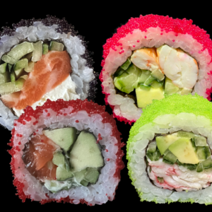 каліфорнія тобіко, лосось слабосолений, каліфорнія тобіко креветка, каліфорнія грін, «Африка», Вага — 1140 гр.