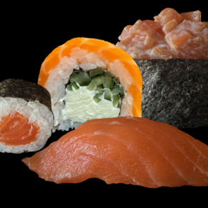 гункани з лососем 2 шт, нігірі з лососем 2 шт, філадельфія лосось , макі лосось Вага — 660 гр