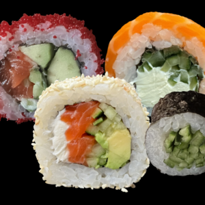 Макі огірок, Каліфорнія тобіко лосось, Каліфорнія кунжут, слабосолений лосось, Філадельфія класик Вага — 1035 гр.