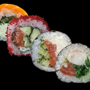 Філадельфія лосось класік, каліфорнія тобіко лосось, футомакі лосось, футомакі Сінгапур Вага — 1170гр.