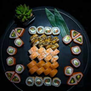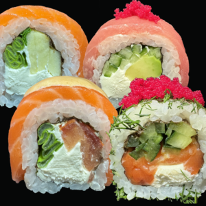 Філадельфія лосось класік, Філадельфія кунжут, Філадельфія тобіко, Філадельфія вугор, Ебі сірогома, Схід сонця Вага — 1790 гр