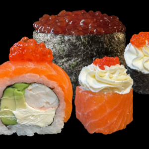 Рол «Вишня» Рол «Ікура» Макі «Вершковий Лосось» Гункан «Червона Ікра» 2шт Вага — 950 грам
