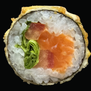 Рол в темпурі , з лососем, вершковим сиром , та огірком . Вага — 280 гр.