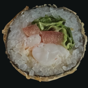 Рол з креветкою, помідором, листям салату , горіховим та спасі соусом Вага — 280 гр.