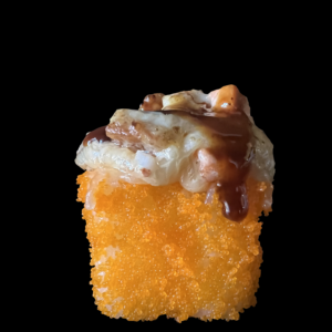 Рис, норі, крем сир , ікра тобіко , вугор , креветка, лосось, спайсі соус, унагі соус, кунжут. Вага -300 гр.