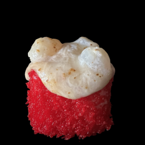 Рис, норі,тобіко,крем сир ,помідор,морський гребінець ,соус спайсі . Вага -300 гр