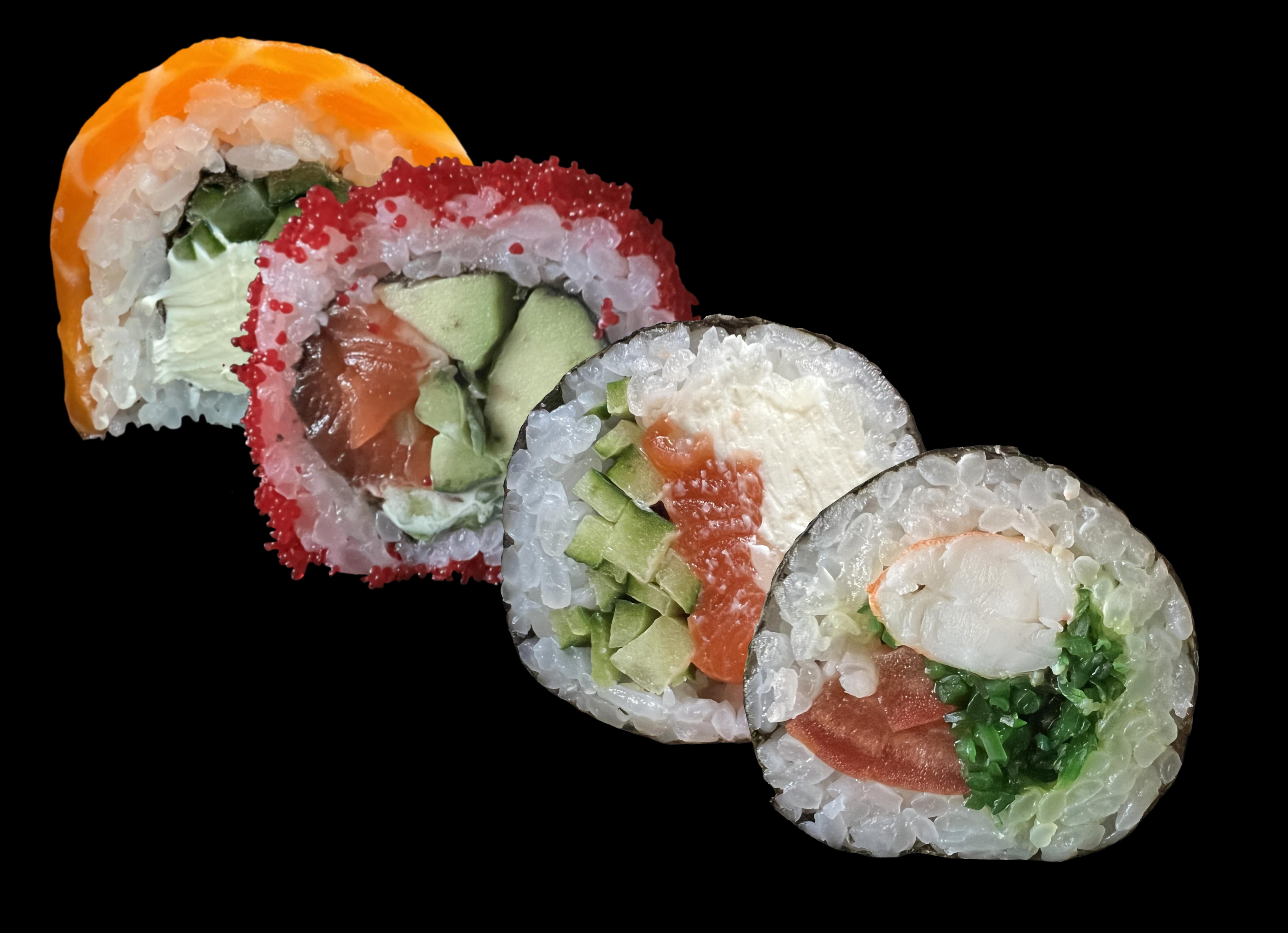 Філадельфія лосось класік, каліфорнія тобіко лосось, футомакі лосось, футомакі Сінгапур Вага — 1170гр.